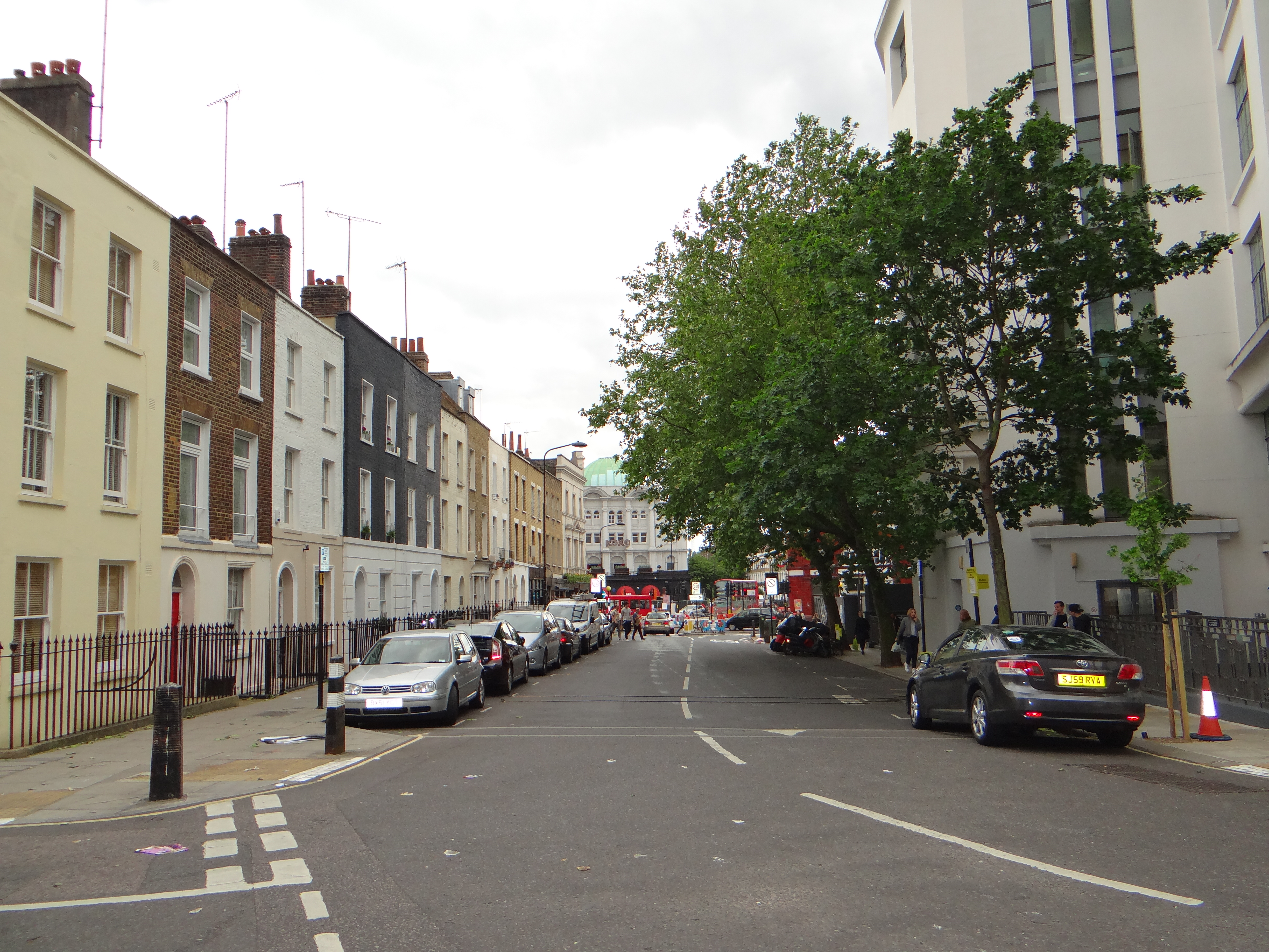 Mornington Crescent, rechts die Carerras Zigarettenfabrik, im Hintergrund rechts die Haltestelle und links das Camden Theatre (Koko), Foto Daniel Zylbersztajn