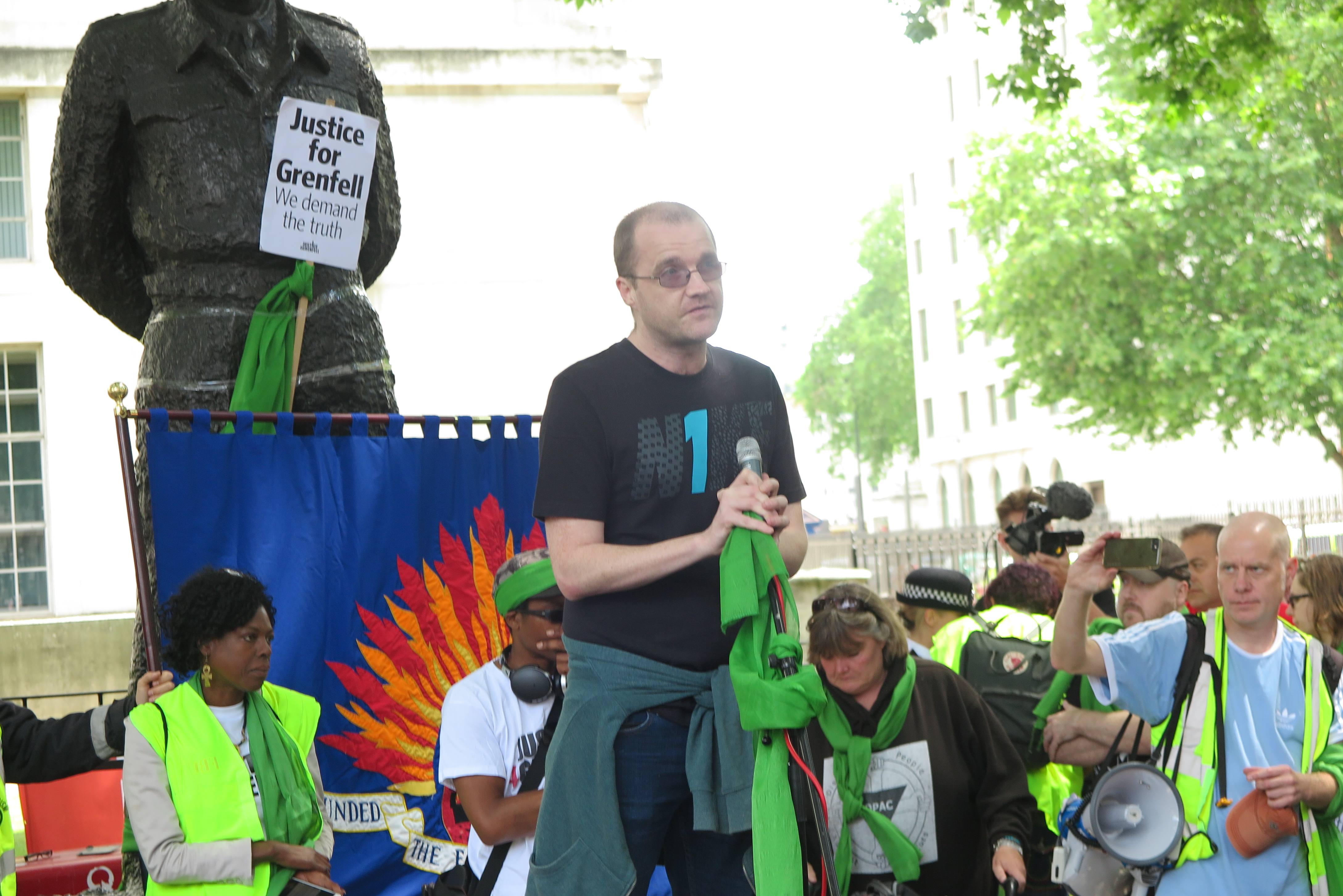 Joe Delaney Lokalaktivist bei der Demo bei Downing Street 16.6 2018 IMG_1084