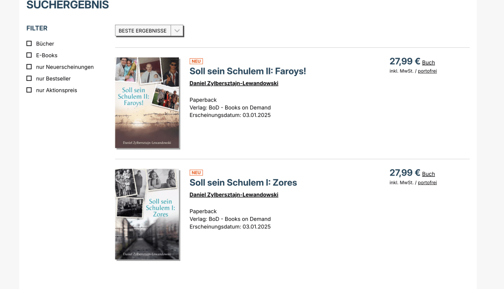 The German edition of s “Zol Zajn Shulem” are now available in German, Soll sein Schulem
